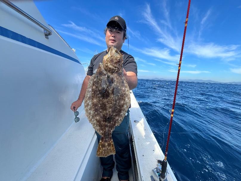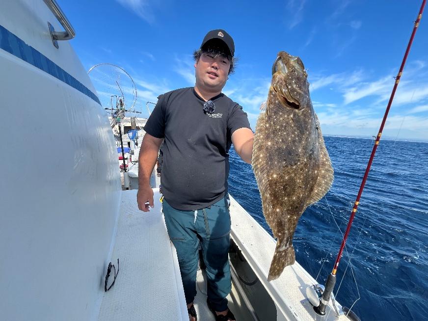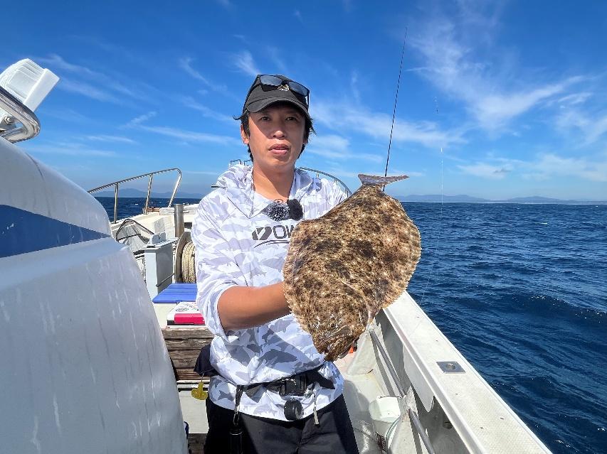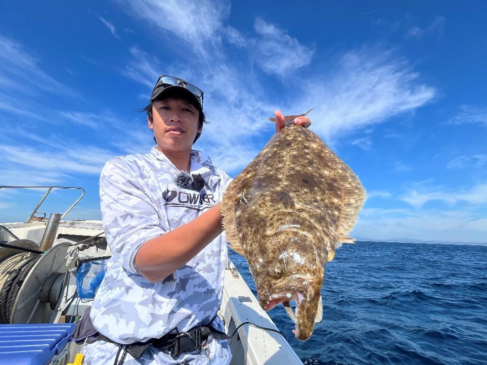 渋谷さんが、ヒラメを釣った後もアタリは連発します。続いて西馬さんもヒラメが釣れました。本日3匹目。