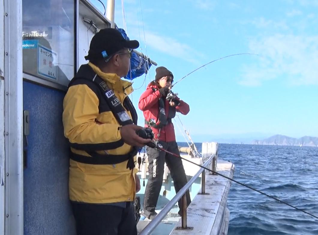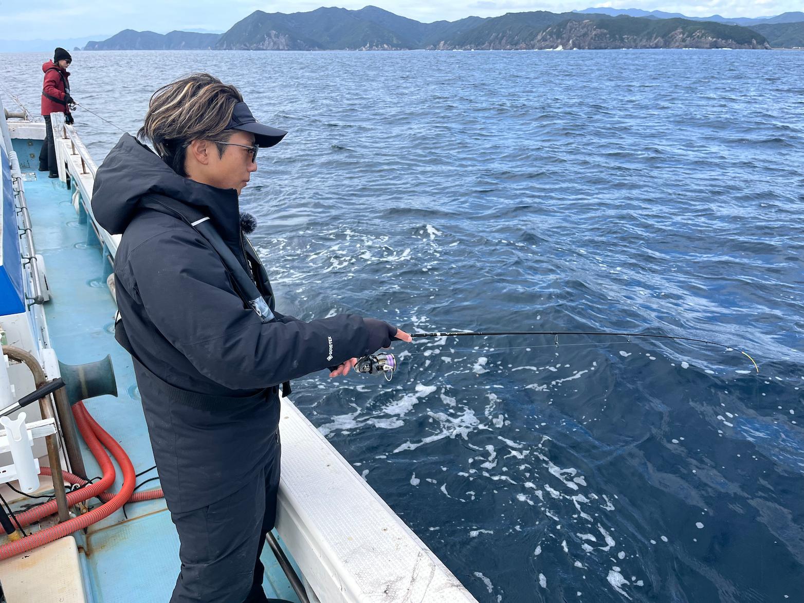 太田さんのコメント録り中、船の前方では土井さんにもヒット!
