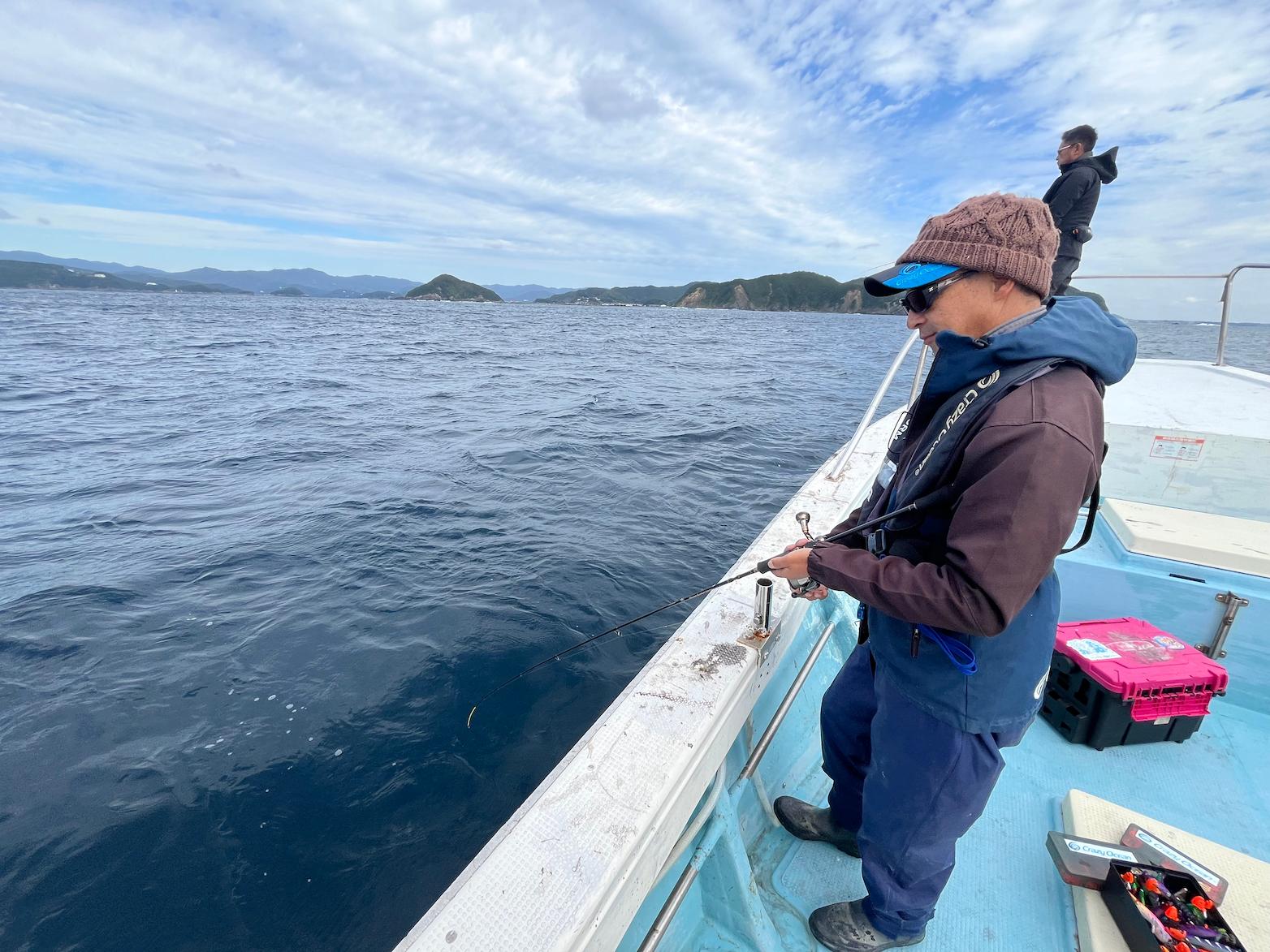 太田さんは朝一に大きくシャクって2杯を釣り上げましたが、実は水深が深いポイントでは、シャクってもエギ自体はほとんど動いていないそうです。太田さん曰く、水深があればシャクらず、早巻きだけでも十分に釣れるとのこと。