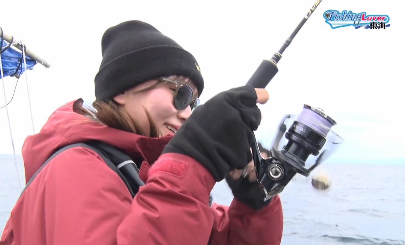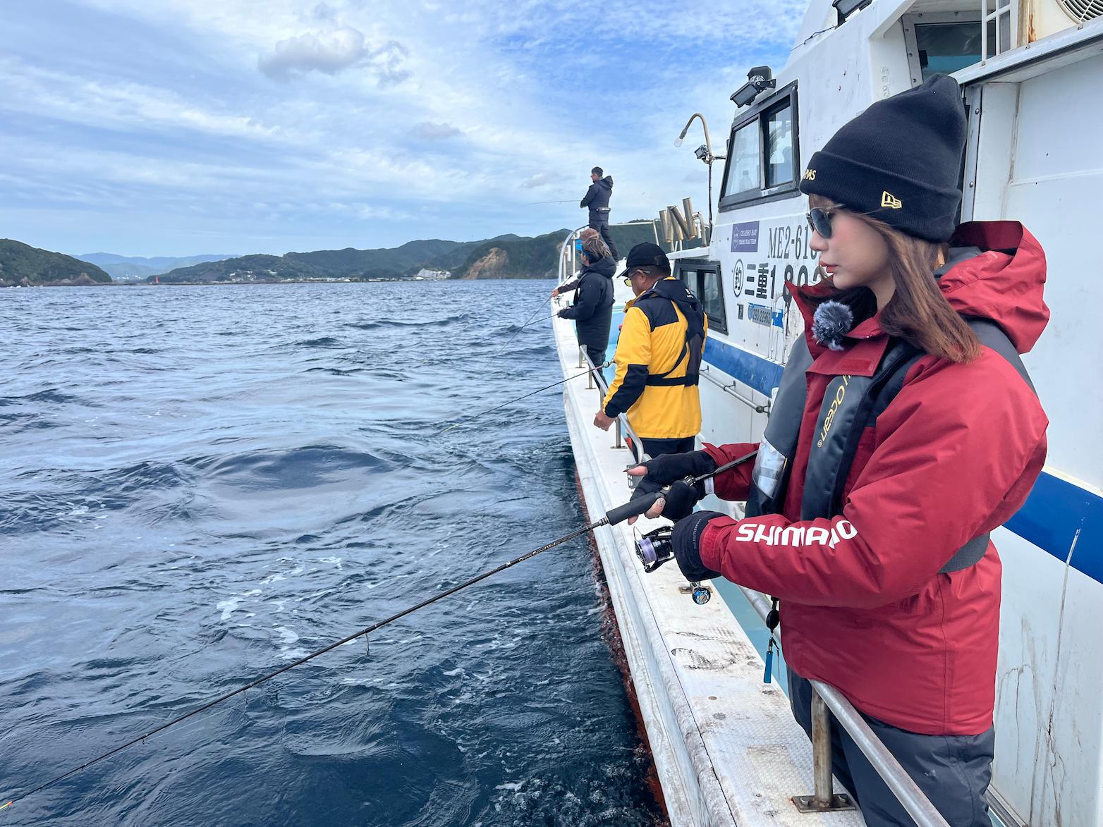 ポイントに到着したメンバー。早速、太田さんが “あゆちぃカラー” のエギを投入すると――