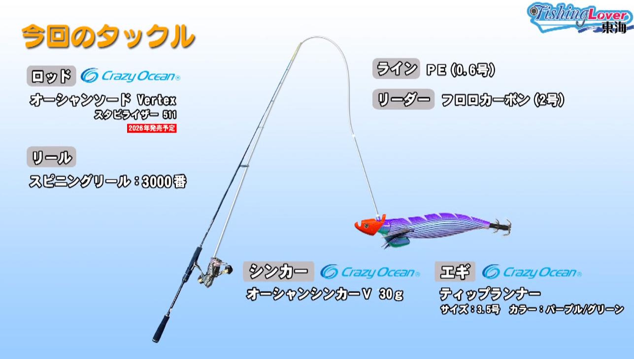 今回のフィッシングラヴァー東海は、三重県・五ヶ所沖でティップランに挑戦します。これからサイズアップが期待できるアオリイカを狙い、特徴的なベリー部分をもつ専用ロッドと、素早く沈むエギを駆使して攻略していきます。それでは早速、今回のフィッシングラヴァーを紹介しましょう。