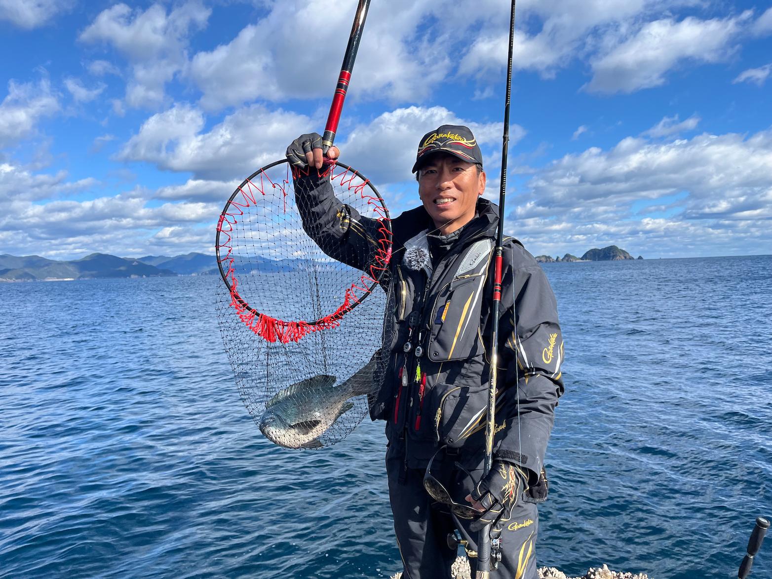 この日は潮がほとんど動かない難しい状況。そんな中、前岡さんは撒き餌と仕掛けを長く留められるポイントを作り、そこへ寄ってくるグレを狙うという攻略法を実践しました。この時期ならではの迫力ある寒グレ。皆さんも、ぜひチャレンジしてみてはいかがでしょうか(^-^)