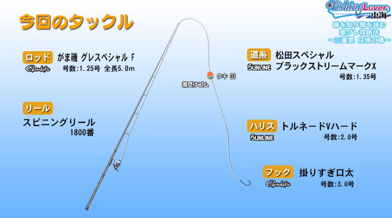 - ロッド:がまかつ がま磯 グレスペシャルF (1.25号/ 5.0m)