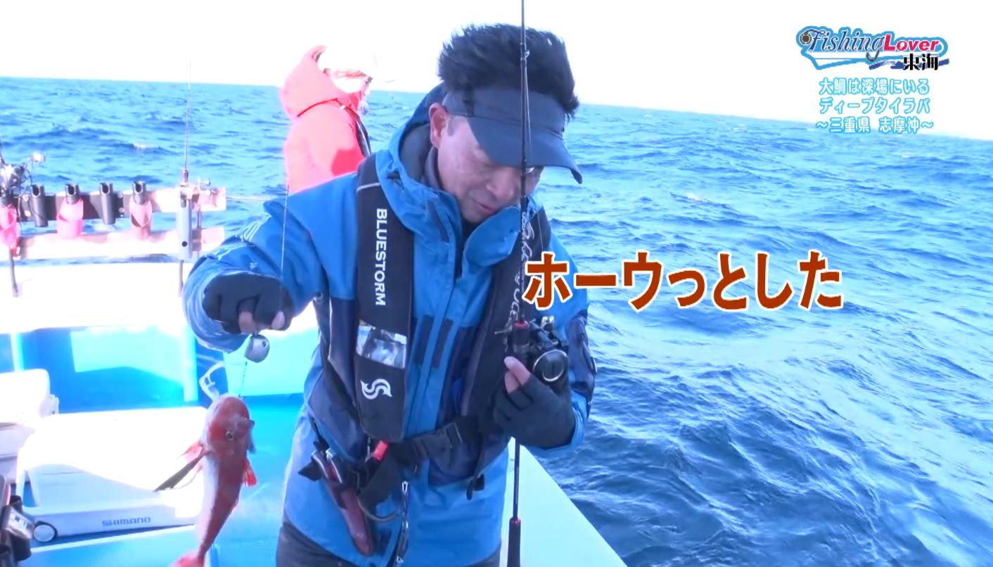このあと、時合に突入したのか、サポートメンバーの宮城さんが、この日2匹目となるホウボウをゲット。流れを引き寄せます。すると今度は、フィッシング遊 松阪店の折田さんの竿が、大きくしなります。