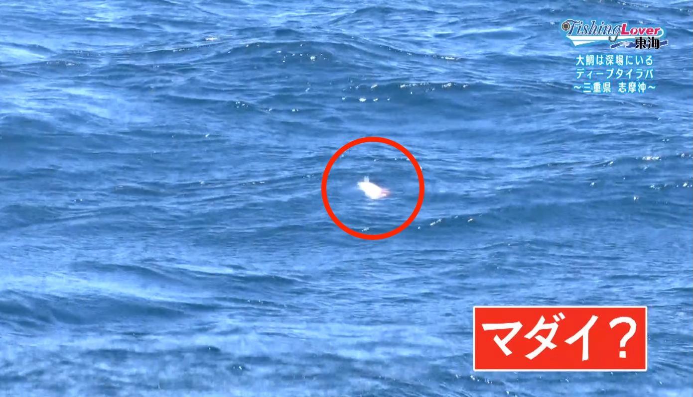 津井さんが順調に巻き上げていると、魚影が見えたその瞬間――まさかのバラシ。しかし、水面には魚が浮いたまま。船を近づけ、回収を試みます。果たして、その正体はマダイなのでしょうか!?